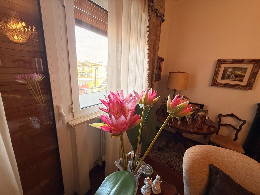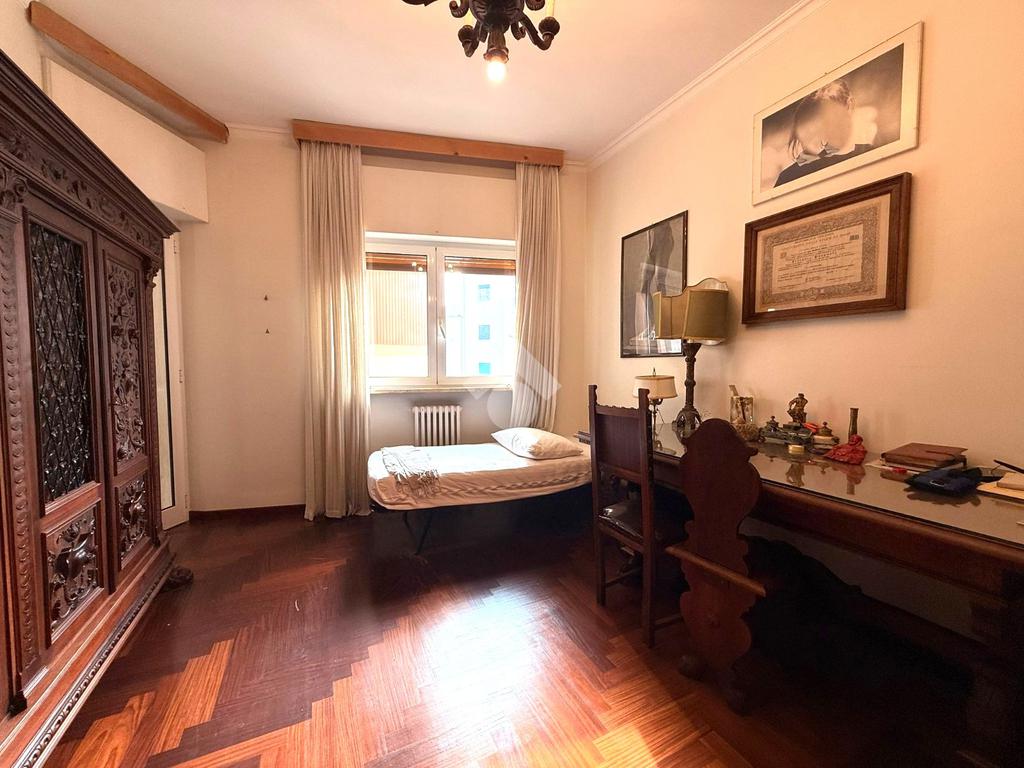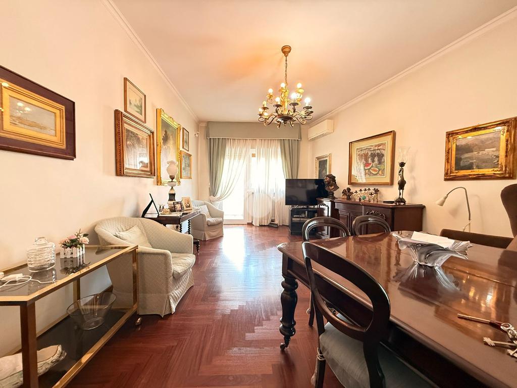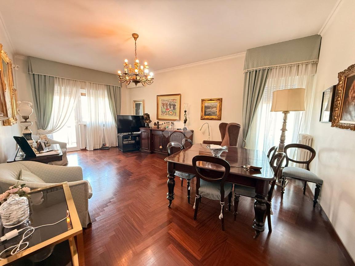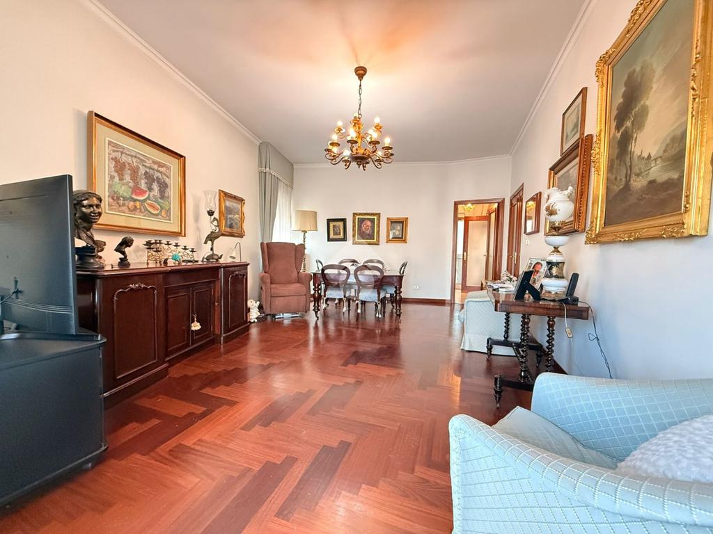 L’immobile, libero e in ottimo stato, è posto al quarto piano di uno stabile elegante, ben abitato e servito da ascensore. La soluzione si distingue per la generosa metratura e l’ottima distribuzione degli spazi interni, ed è composta da un salone doppio, cucina abitabile, quattro camere da letto, due bagni e ripostiglio. La tripla esposizione conferisce grande luminosità agli ambienti durante tutto l’arco della giornata, valorizzata dalla presenza di tre balconi.