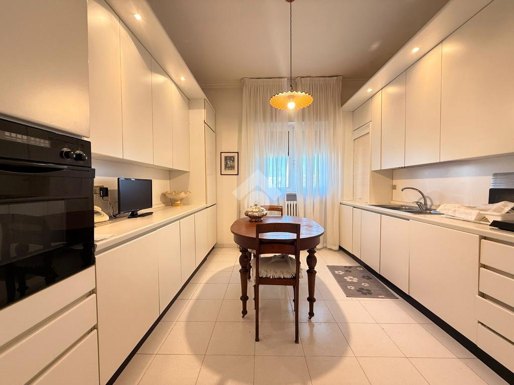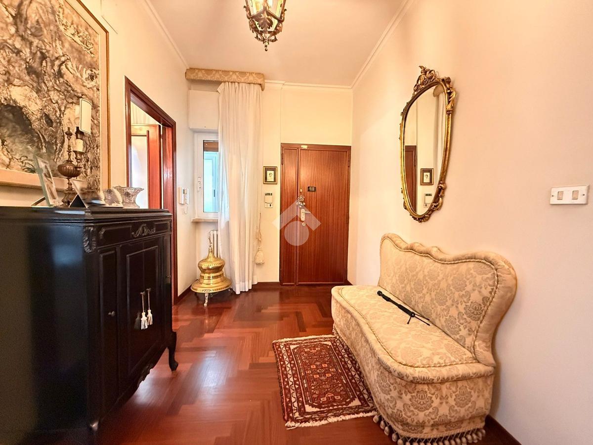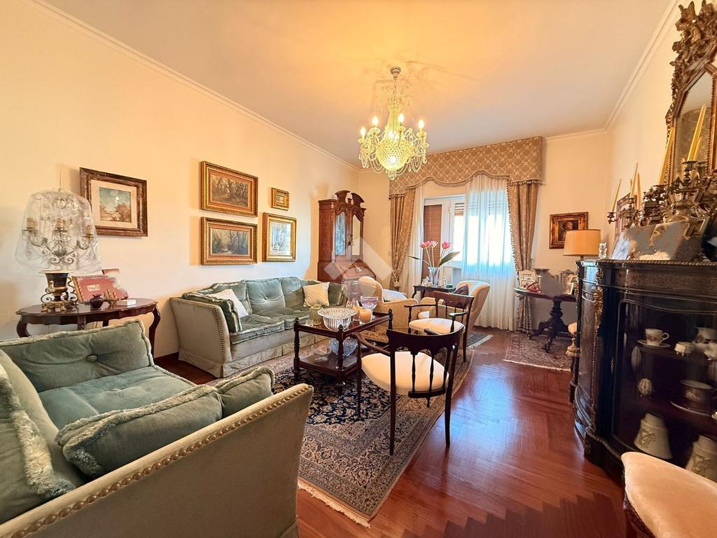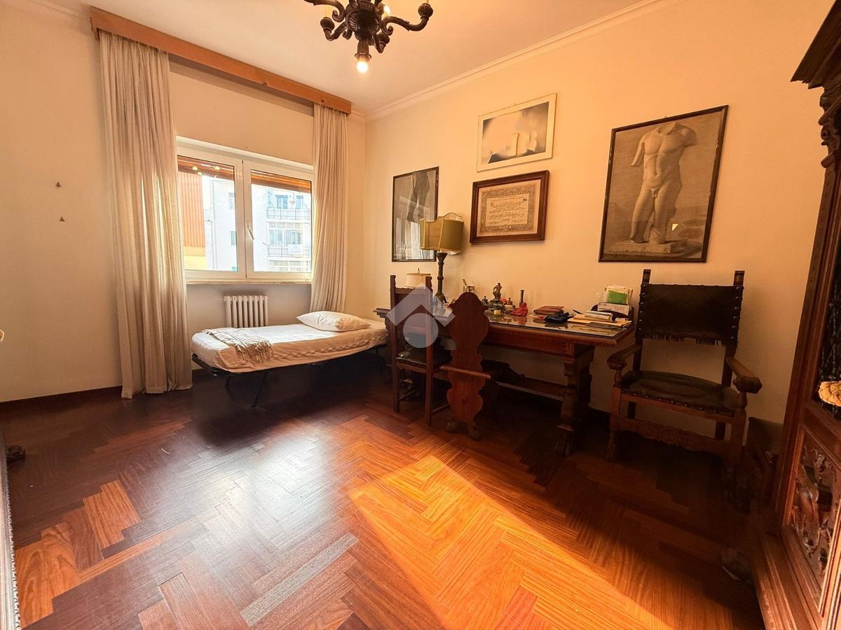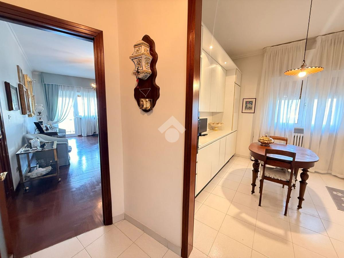 L’immobile, libero e in ottimo stato, è posto al quarto piano di uno stabile elegante, ben abitato e servito da ascensore. La soluzione si distingue per la generosa metratura e l’ottima distribuzione degli spazi interni, ed è composta da un salone doppio, cucina abitabile, quattro camere da letto, due bagni e ripostiglio. La tripla esposizione conferisce grande luminosità agli ambienti durante tutto l’arco della giornata, valorizzata dalla presenza di tre balconi.